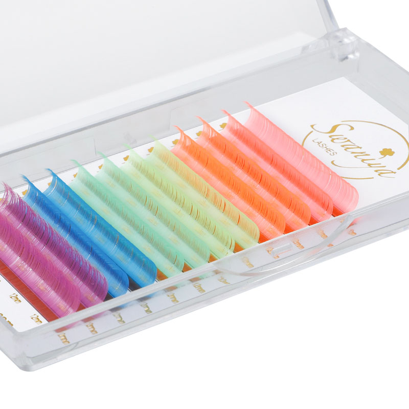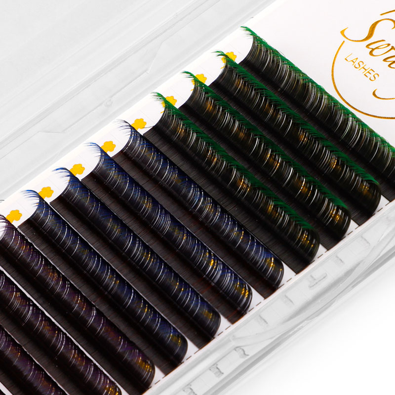 সোয়ানিয়া রঙিন আইল্যাশ এক্সটেনশনে ওম্ব্রে রঙ (ওম্ব্রে নীল, ওম্ব্রে বেগুনি, সাদা গোলাপী ওম্ব্রে ইত্যাদি), সাধারণ রঙ (লাল, গোলাপী, হলুদ, সাদা, সবুজ, নীল, নীল, বেগুনি, ইত্যাদি), নিয়ন রঙ রয়েছে।